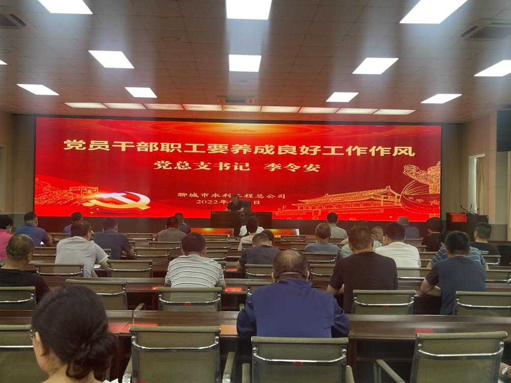 8月5日,聊城市水利工程總公司開展領(lǐng)導(dǎo)干部講黨課活動,公司黨總支書記李令安同志以“黨員干部職工要養(yǎng)成良好工作作風(fēng)”為主題講黨課,勉勵大家錘煉嚴(yán)、真、細(xì)、實、快、勤、精等良好工作作風(fēng)。
