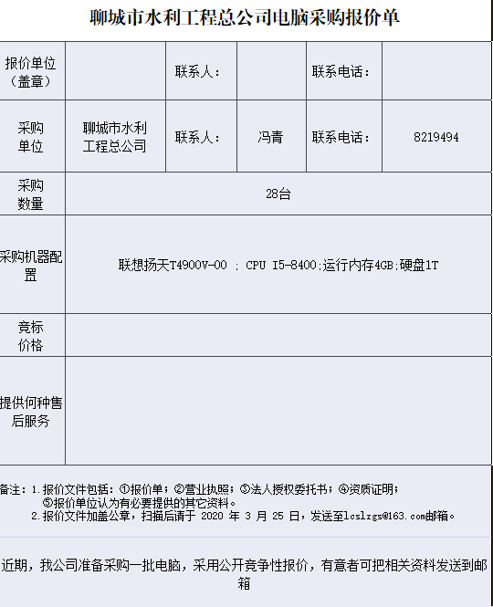聊城市水利工程總公司電腦采購(gòu)公示